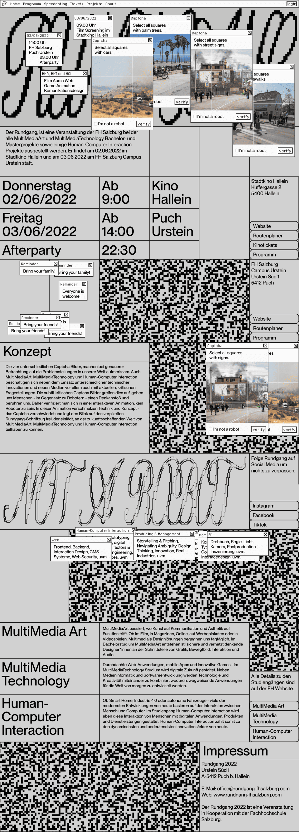 At Salzburg University of Applied Sciences, we focus not only on technological innovations but also, and perhaps more importantly, on socially relevant problems and critical issues. For the presentation of the annual exhibition, where all the big projects of the Creative Technologies department are showcased – “Rundgang 2022” at Salzburg University of Applied Sciences, we addressed these sensitive topics in order to initiate change.